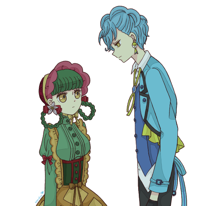 ジニア(イエッサン♀)とシュリフ(イエッサン♂)は大事な幼馴染で彼らの前ではよく喋るし明るい。
