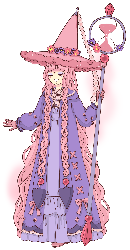巨大な杖を使って魔女界に結界を貼り続けている魔女。